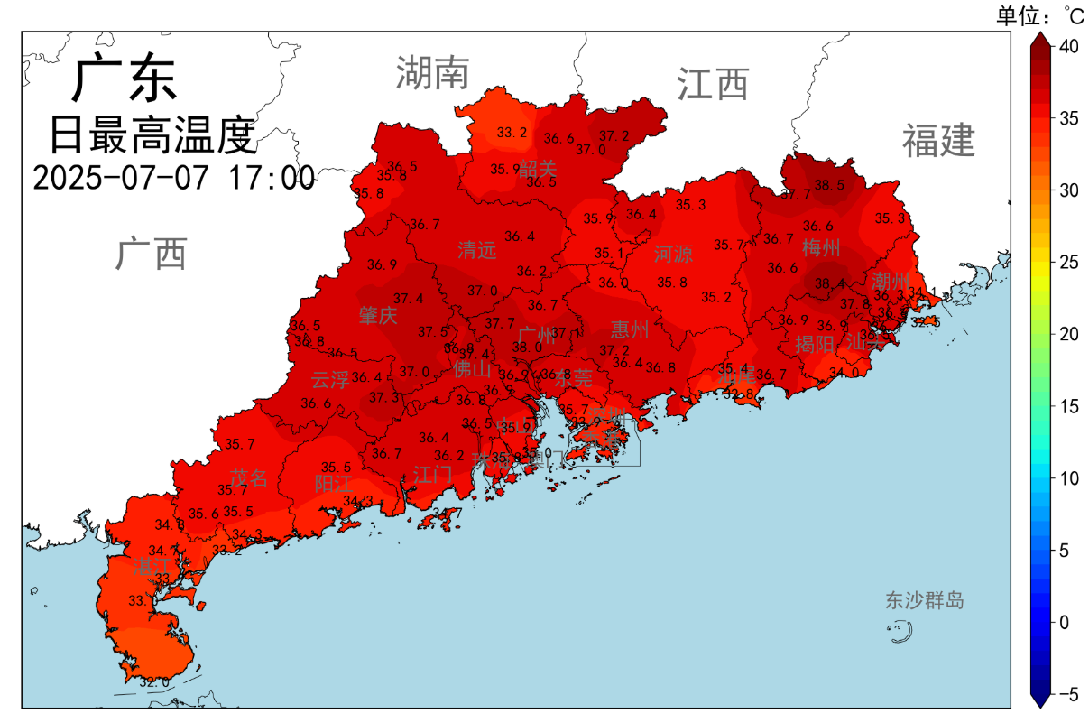 7日,广东各地气温“狂飙”至35℃以上,梅州蕉岭更是出现全省最高气温38.5℃。在广州,当天也录得38℃的气温,刷新今年以来的最高温纪录。